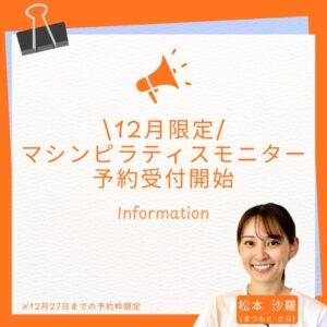 【12月限定】マシンピラティスモニター募集のお知らせ