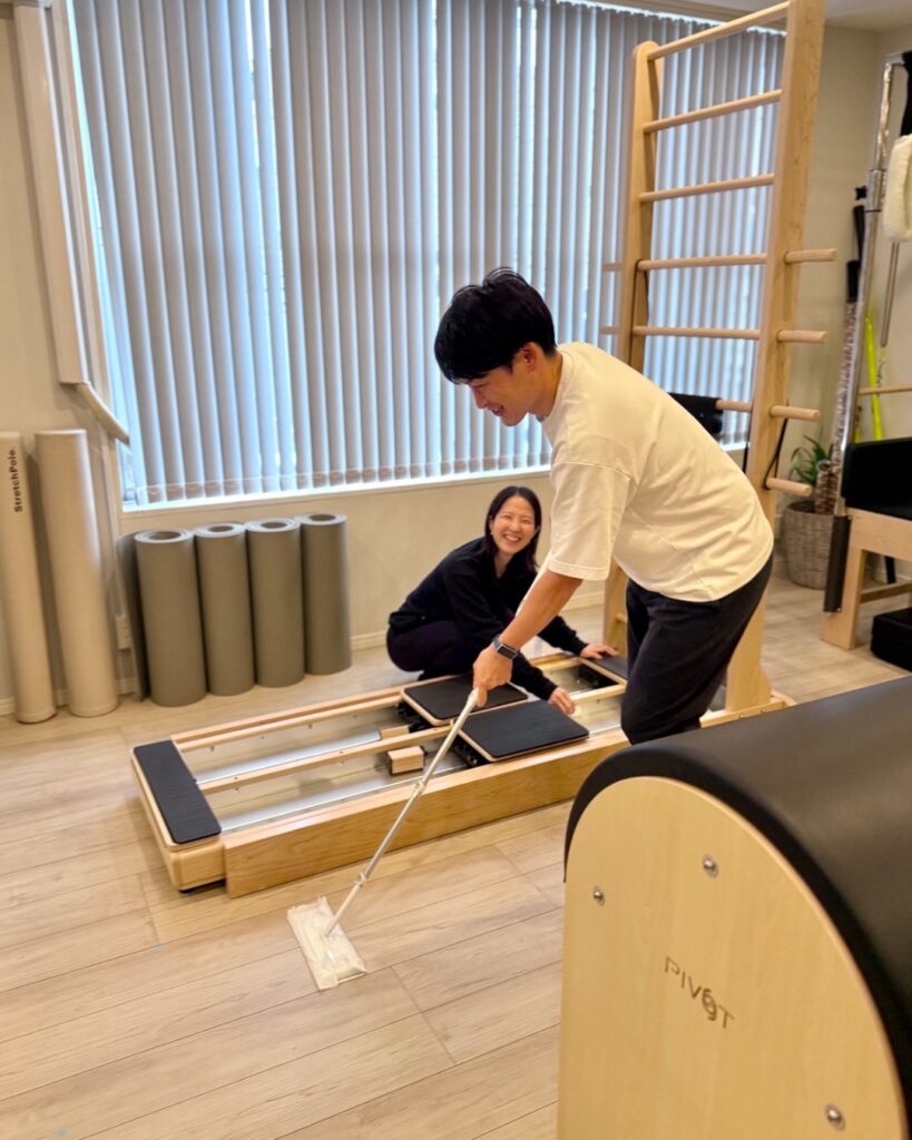 マシンや床、鏡など、いつも皆さんが使う場所をひとつずつ丁寧に整えながら、